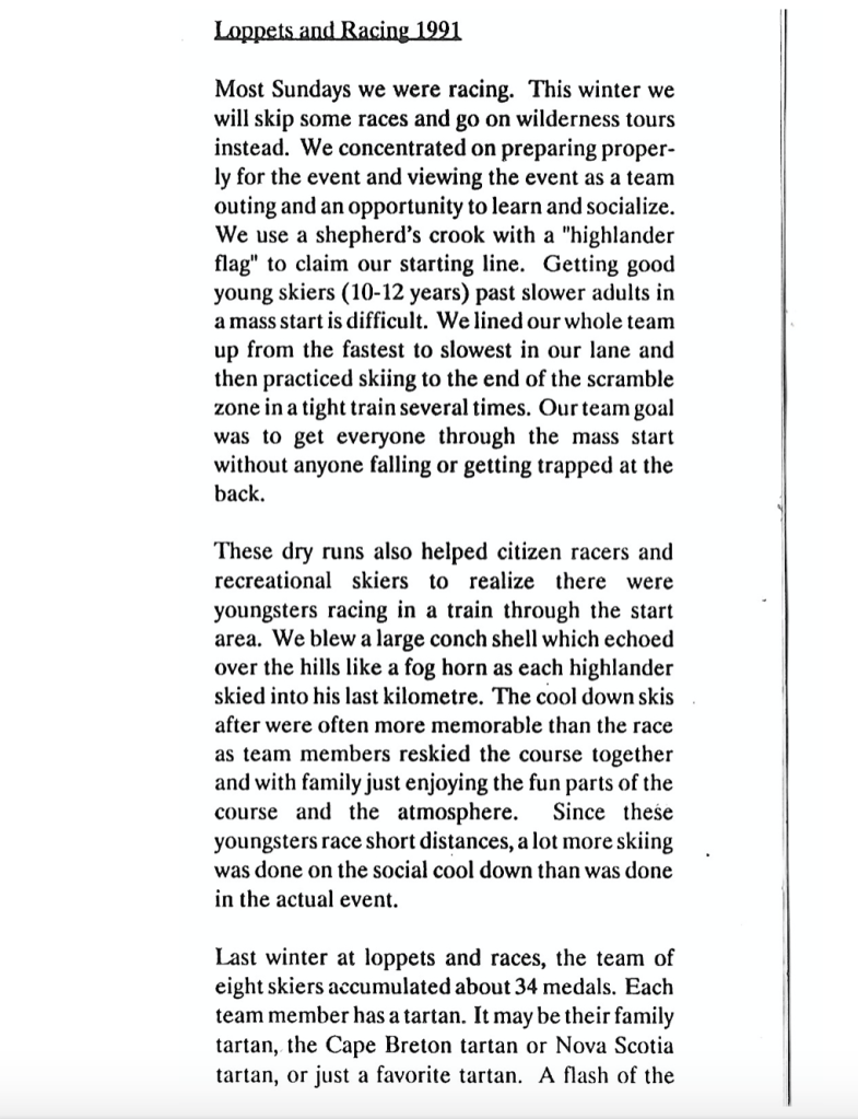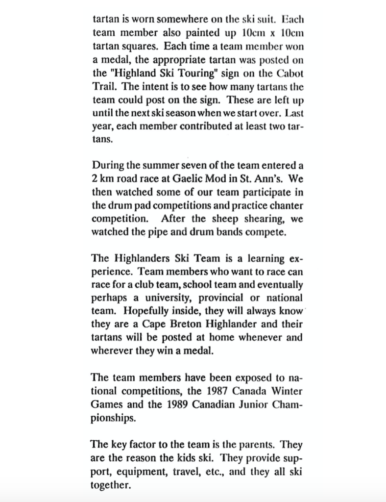 The North Highlanders Ski Team is an important part of Nova Scotia’s cross-country ski history. Learn more by viewing the article below, as featured in the Winter 1992 edition of the “Stride and Glide” – Nordic Ski Nova Scotia news.