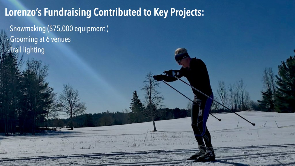 On behalf of HNSC Lorenzo spearheaded the partnership with Brunello Estates Golf Club in 2016 to groom ski trails on their paved golf cart tracks and driving range – as well as extensive financial and in-kind contributions by Brunello Estates, including staff time to groom trails and maintain equipment.