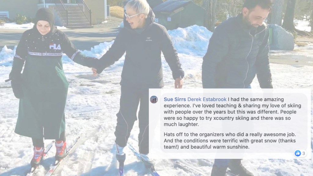 Halifax Nordic’s experienced instructors answered Deirdre’s call to volunteer during the “try it skiing” event for new Canadians. Derek Estabrook, 10 year veteran instructor reported, “Today was the most fun I have had in my decade of teaching XC skiing. I have never seen so many smiles and so much laughing at the Brunello Bowl. An amazing day!”