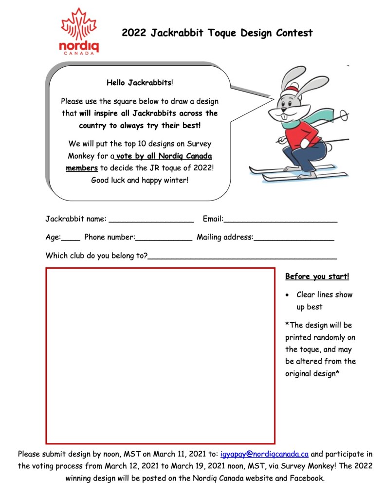 Get your ideas ready…here is the template for your design:  Jackrabbit Toque Design Contest 2022 (PDF).