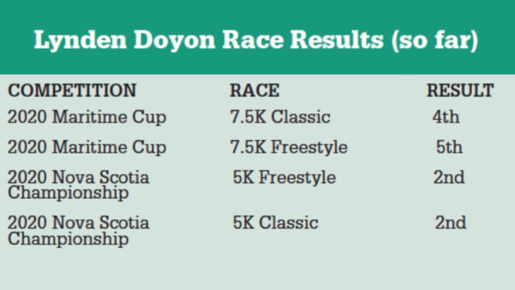 Lynden Doyon has been skiing since he was three years old. The first outing he remembers was in Cape Breton, skiing a mountain on Christmas Eve with his father Kris and Daniel Murray, who is now his coach with the Nova Scotia provincial cross-country ski team.