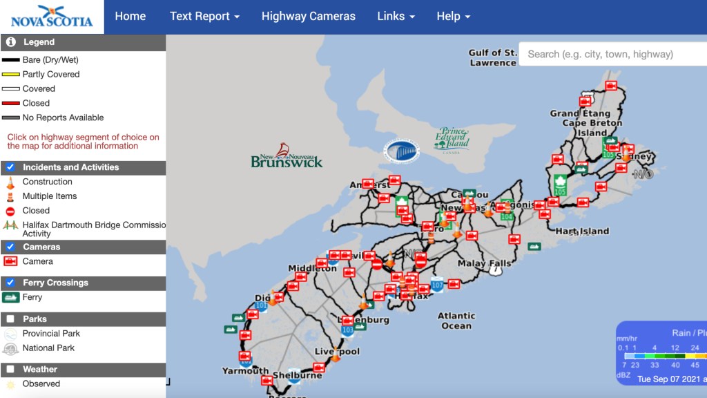 The Nova Scotia government has developed “Plowtracker” to show winter maintenance activities taking place on provincially owned and maintained roadways. Municipalities have separate winter maintenance programs, not reflected in this application. In addition to showing you where our plows are operating during the winter season, Plowtracker also allows the user to turn on other information such as the provincial winter maintenance service levels, access to the provincial highway cameras, and the ability to see where winter maintenance activities have taken place within the last 30, 60, and 90 minutes. To view only highway cameras (click here).