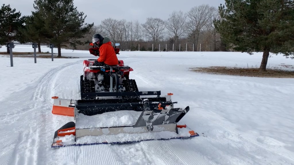 Lorenzo Caterini, head of grooming operations for Scotia XC, made the inaugural groom today, January 21, 2022. Trails were groomed for skate skiing and classic track was set. A Ginzu groomer with a double track setter will be used to set classic tracks, when snow depth is sufficient. This area receives significant snowfall. According to Environment Canada’s Daily Data Report, Greenwood has received 80cm of snow this month (click this link to view). The current snow depth is estimated as 30cm – 40cm.