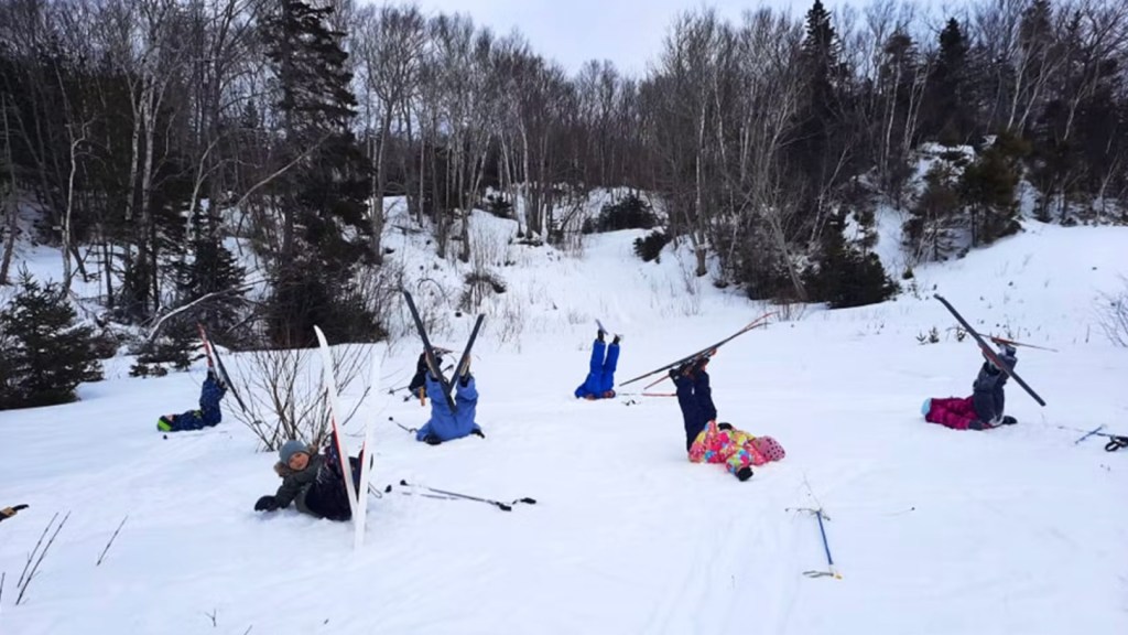 This group of youngsters were learning how to get up after falling during a Jackrabbits program lesson at North Highlands Nordic. CONTRIBUTED
