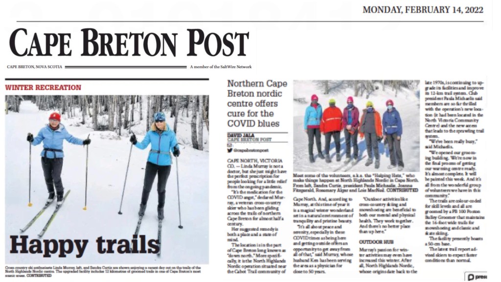 “It’s the medication for the COVID angst,” declared Murray, a veteran cross-country skier who has been gliding across the trails of northern Cape Breton for almost half a century.