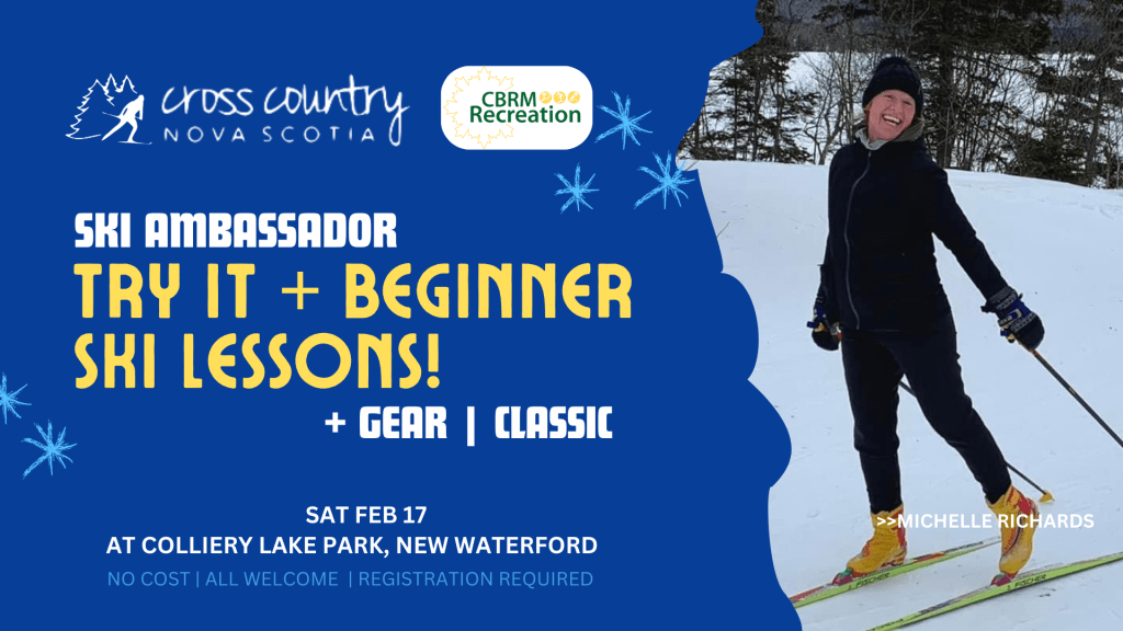 Do you want to learn classic cross-country skiing or improve your technique? Adults are invited to join complimentary lessons for classic cross-country skiing, which include “Try-It” and “Beginner” groups, held in a casual and social environment, at Colliery Lands Park, New Waterford. The lessons will be held this Sat, Feb 17th. All are welcome to attend, there is no fee, and equipment can be provided free of charge.
