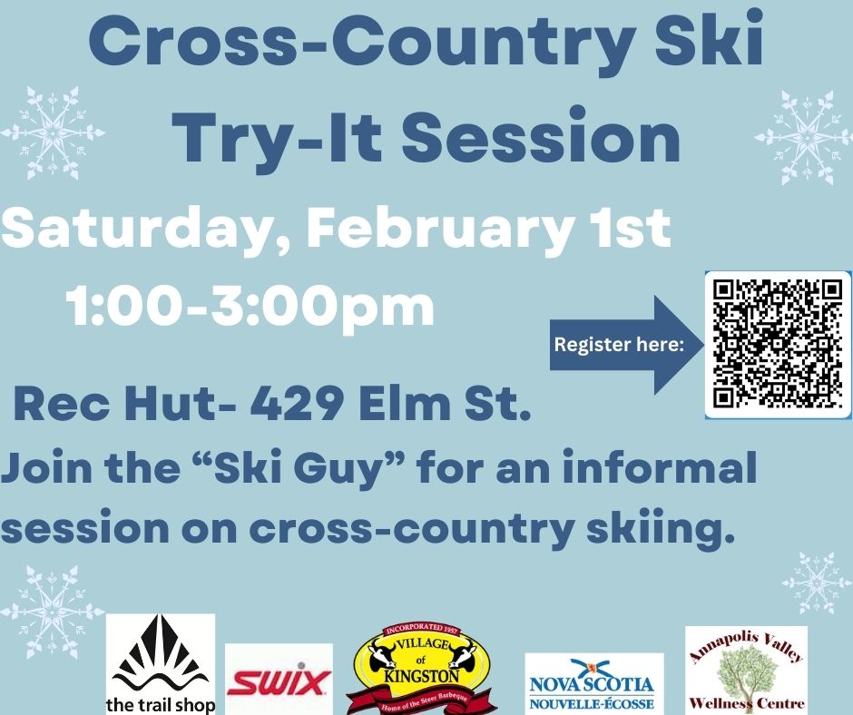Join Ike the “Ski Guy” at the Rec Hut (429 Elm St. Kingston, NS) on Saturday, February 1st 1:00-3:00 pm for Cross-Country Ski Try-It Session!