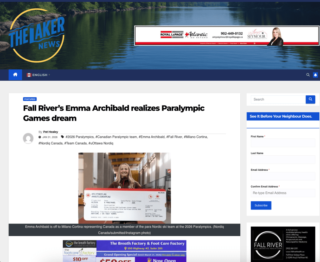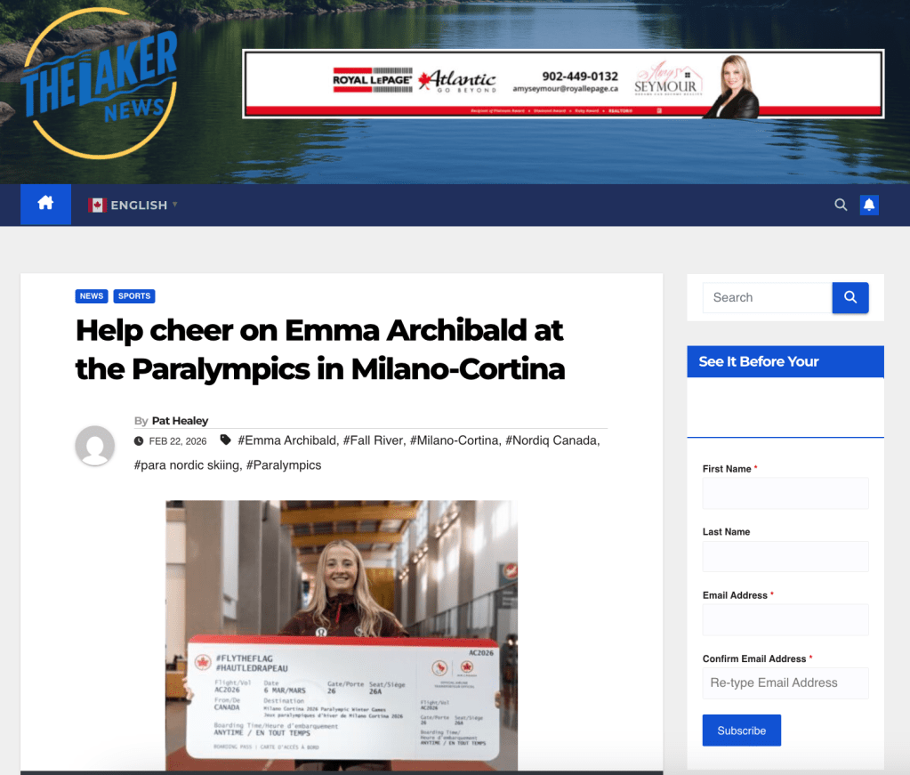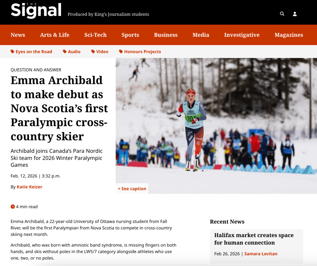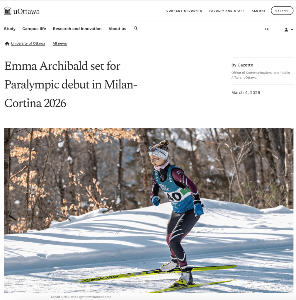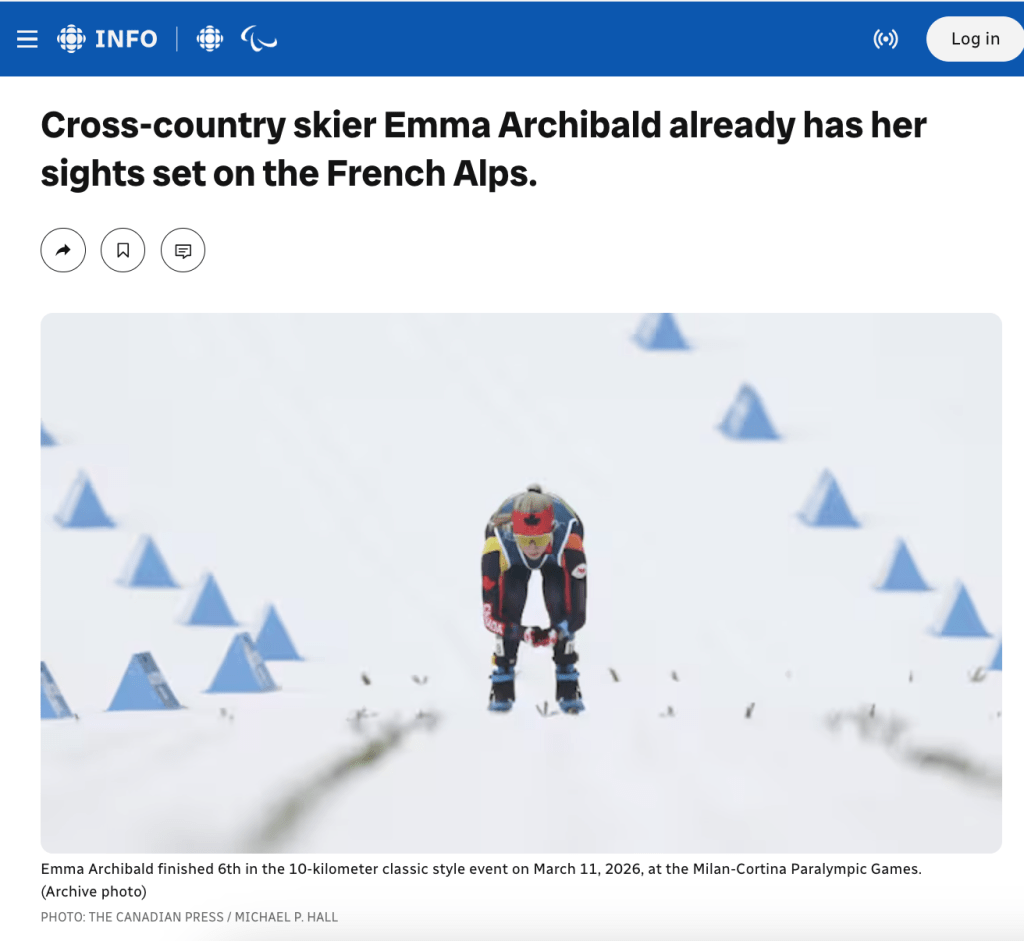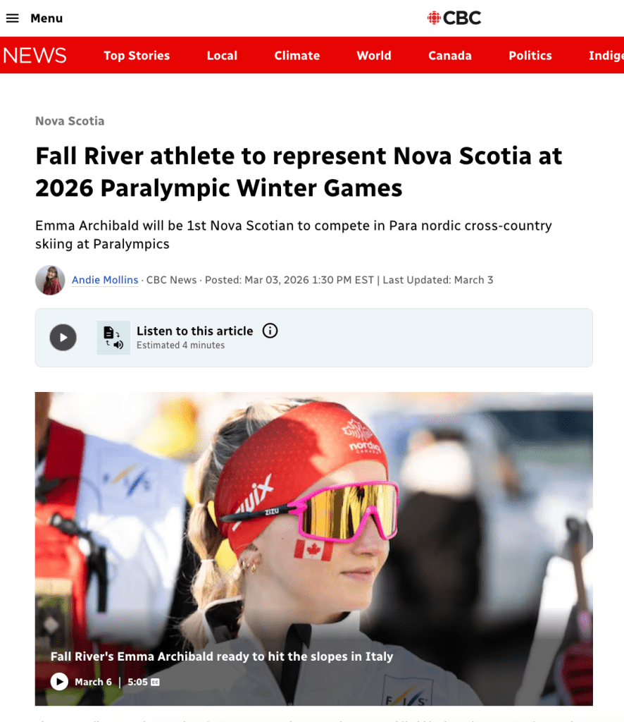 Emma Archibald is Nova Scotia’s first para cross-country skier to compete at the Paralympic Winter Games! The Milano Cortina 2026 Paralympic Winter Games are being held in Italy from March 6 – 15, 2026. Cross-country skiing events are taking place at the Tesero Cross-Country Skiing Stadium.