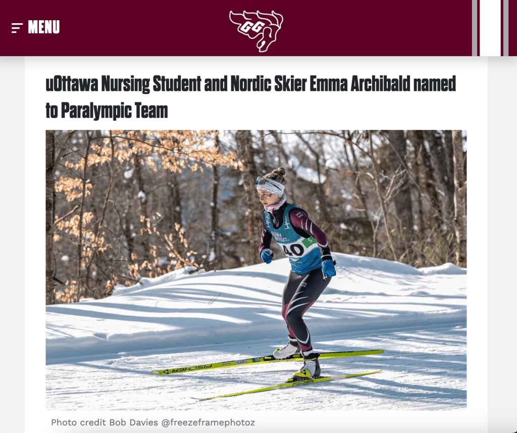 She trains with the University of Ottawa Gee-Gees nordic team while pursuing a nursing degree at the school. She made rapis progress through the Para nordic development pathway, earning international classification as a no-pole skier.