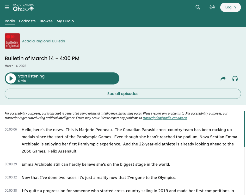 > March 14, 2026: CBC Radio-Canada