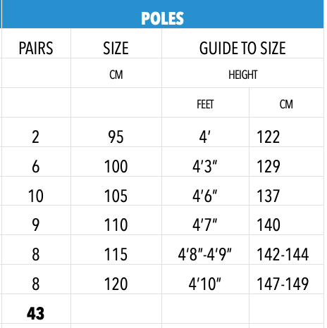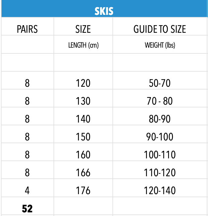 Number of skis + size (i.e. 4 x 120 cm, 2 x 150 cm)